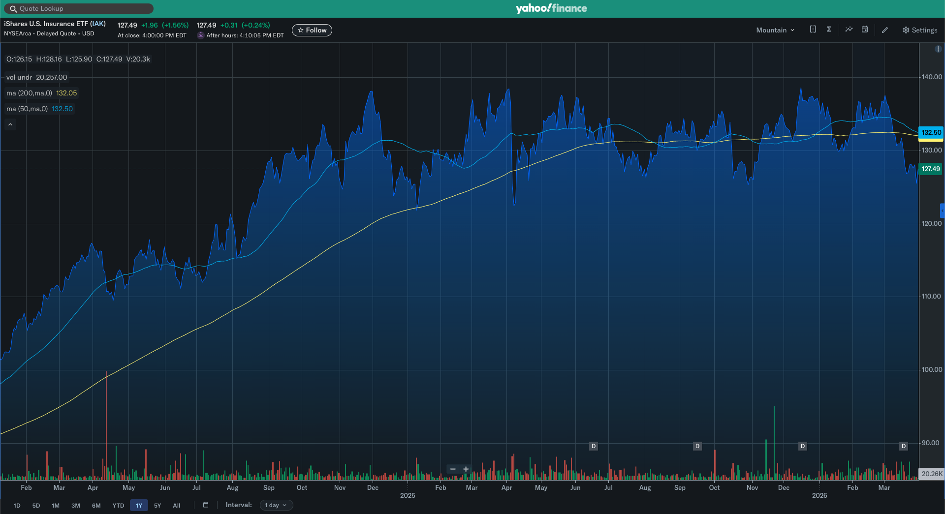 In a portfolio built for stagflation and geopolitical stress, where energy names are volatile, tech multiples are compressing, and cash is earning less than it was six months ago, IAK represents something rare: a position that benefits from the very conditions that are hurting everything else. War risk premiums rise when the world gets more dangerous. Float returns stay elevated when the Fed can't cut. And insurer balance sheets, unlike most companies, actually get stronger when interest rates stay high.